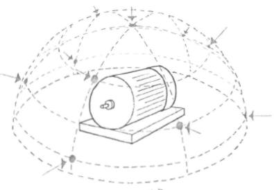 Die Bestimmung erfolgt in den meisten Fällen durch Schalldruckpegel- oder Intensitätspegelmessungen auf einer die Quelle vollständig einschließenden Hüllfläche (siehe Bild aus B&K-Broschüre zur Schallintensität).